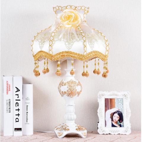 优丽美家 欧式卧室台灯 复古树脂台灯少女公主风床头...