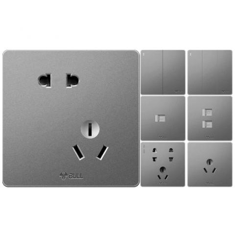 bull公牛86型开关插座G12星空灰色大间距错位...