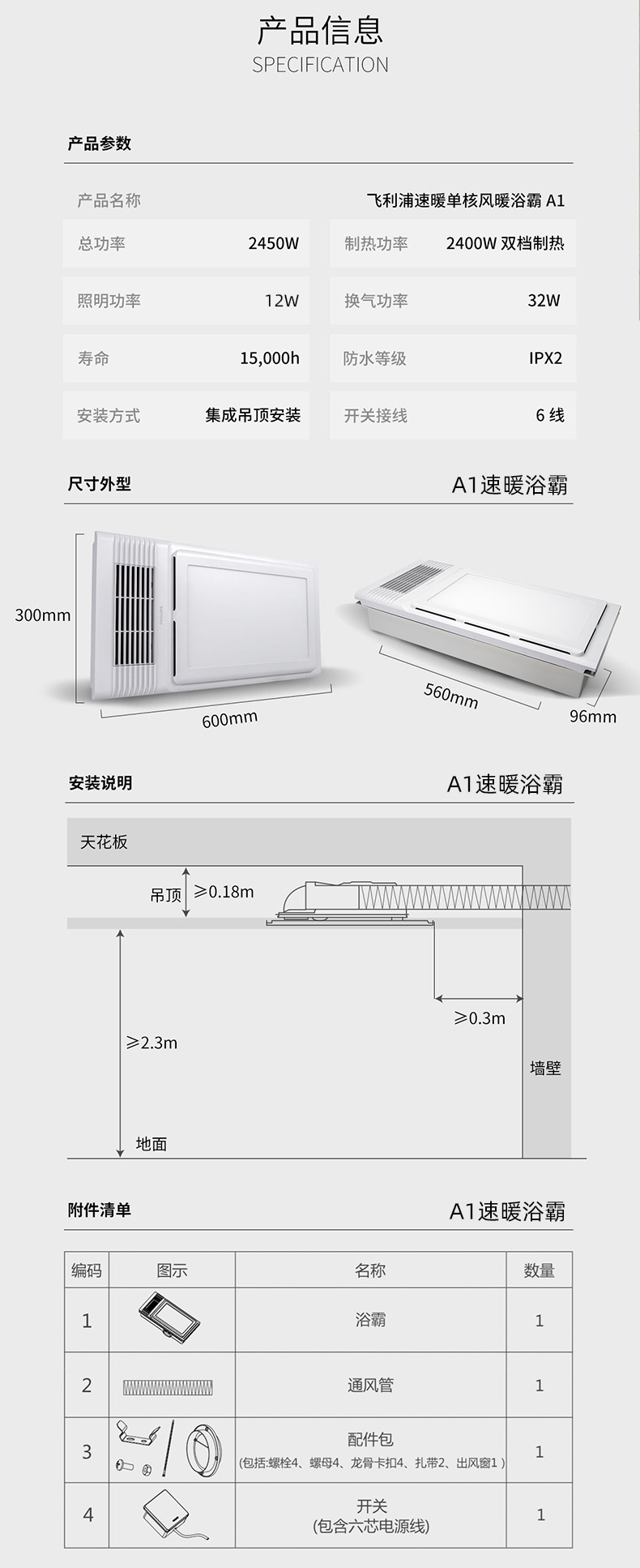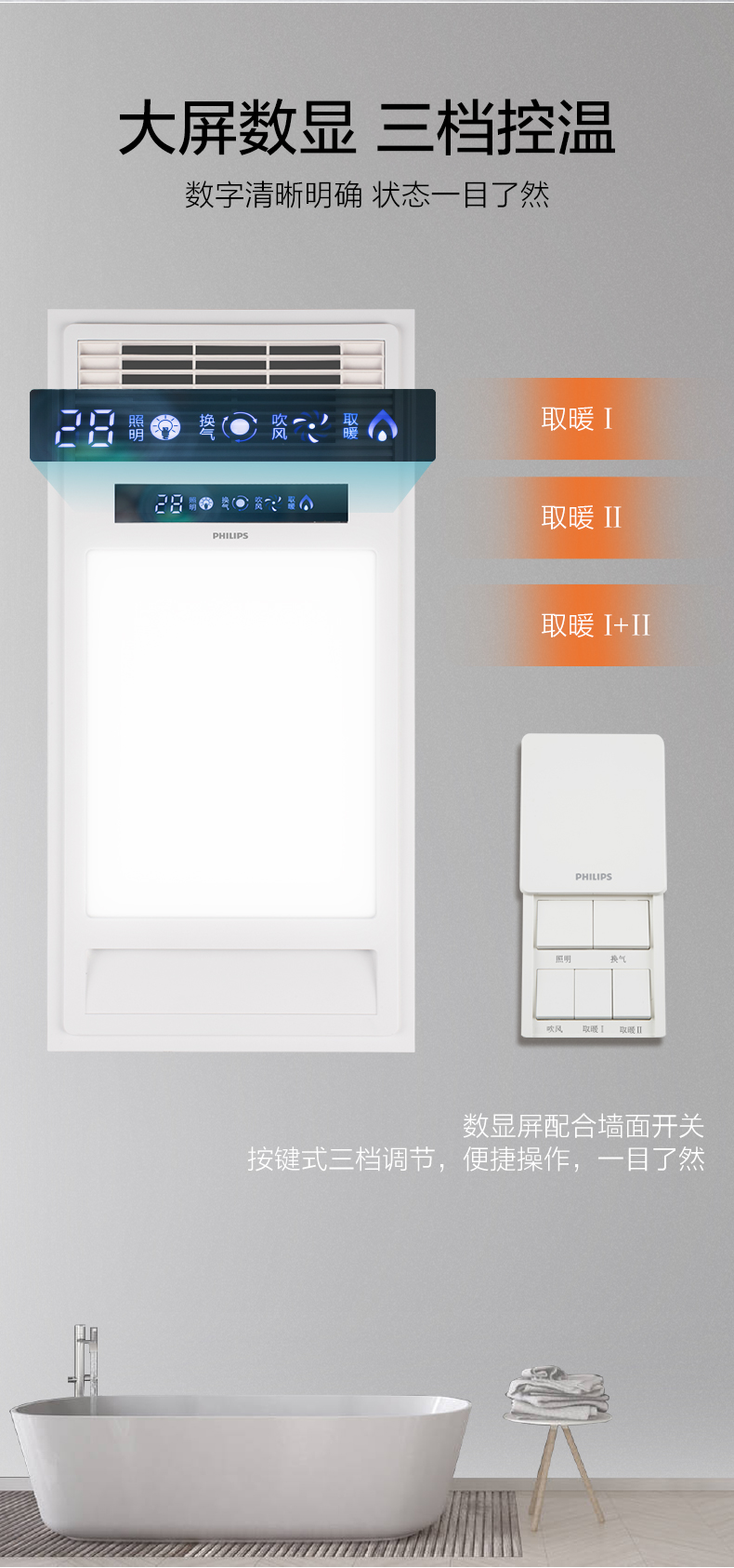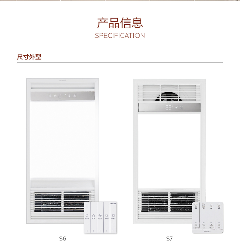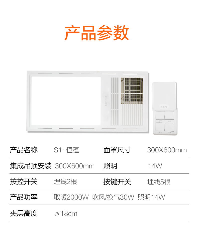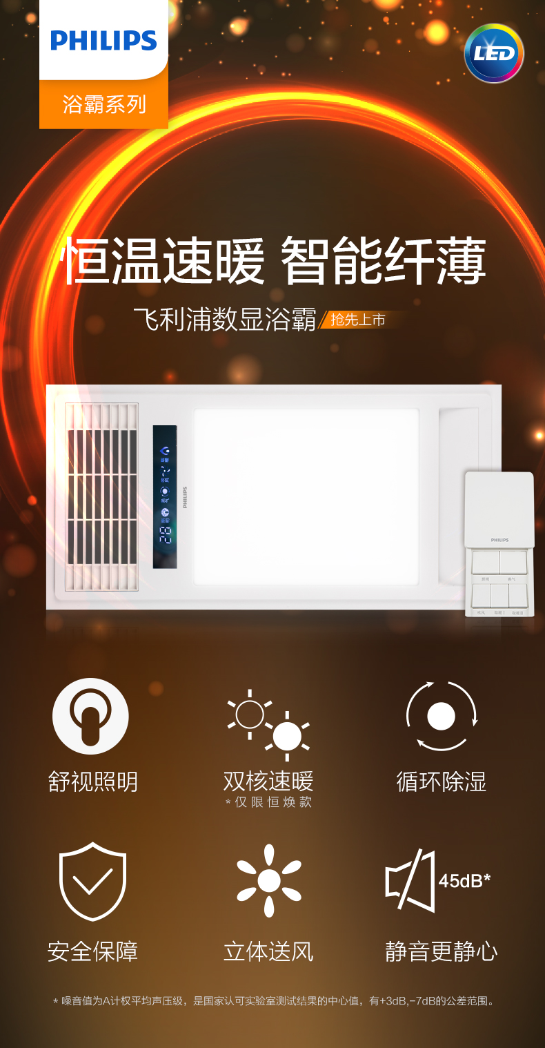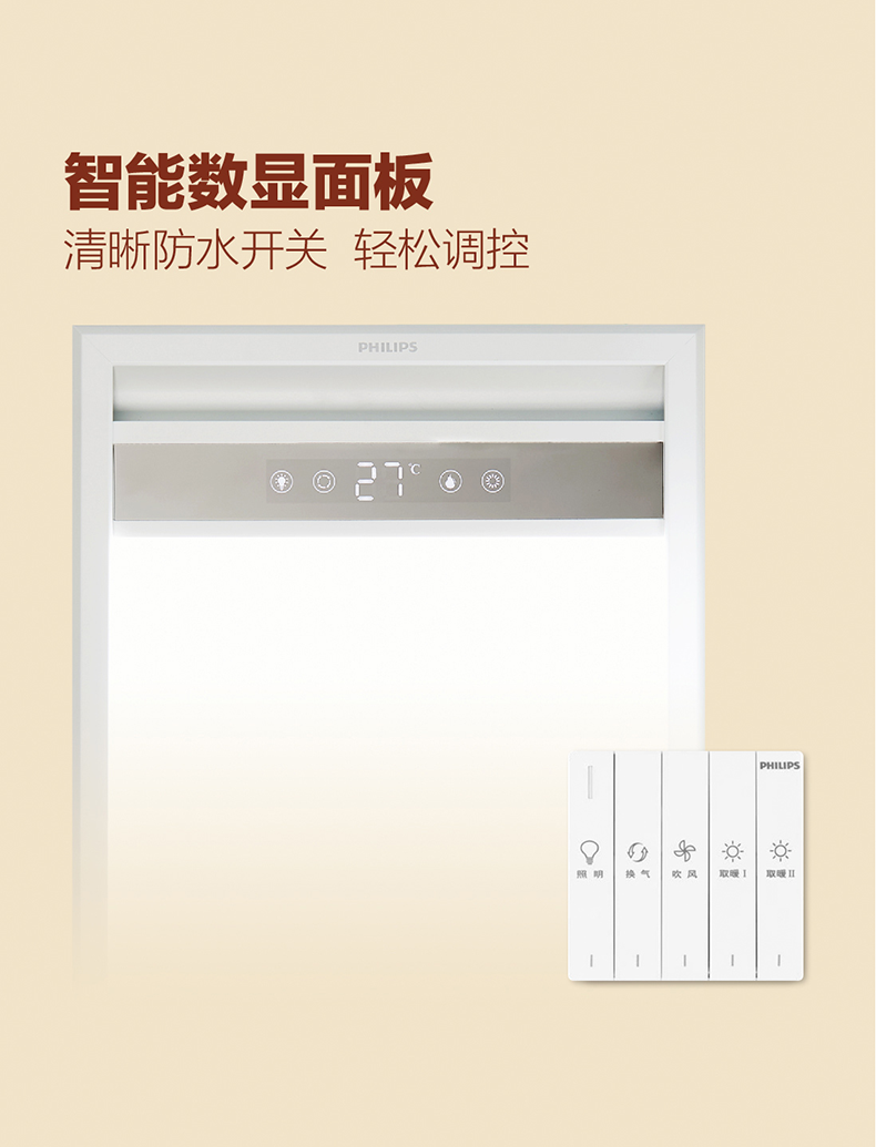 飞利浦(PHILIPS)浴霸集成吊顶灯PTC风暖取暖器换气吹风凉霸LED照明卫生间浴室暖风机替代灯暖 【宽屏浴霸】240